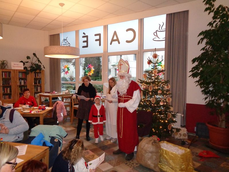 Wie jedes Jahr feierte das Mehrgenerationenhaus des gemeinnützigen Vereins Mütterzentrum Beckum e.V. mit seinen Besucherinnen und Besuchern Weihnachten. In diesem Jahr läutete der Alleinlebendentreff am Mittwoch, dem 04.12.2024 mit seinem jährlichen Weihnachtsknobeln und Frühstücken die Weihnachtszeit ein. Am Freitag, dem 06.12.2024 und Dienstag, dem 10.12.2024 warteten die Teilnehmenden der Begleitpersonen-Kind-Spielgruppen im Café mit Geschichten und Weihnachtsliedern gemeinsam auf den Nikolaus. Dieser übergab den Kindern am Ende ein kleines Weihnachtsgeschenk. Am 16.12. 2024 feierten die Seniorinnen und Senioren des Gesellschaftsspielenachmittags, des Alleinlebendentreffs und der Sitzgymnastik gemeinsam Weihnachten. Weihnachtlich unterhalten wurden sie hierbei bei Kaffee und Torte vom Musiker Helmut Mertens und von der Frauentanzgruppe „Lady Like“ aus Neubeckum. Am 18.12.2024 bildete das Weihnachtsknobeln des offenen Handarbeitstreffs bei Kaffee und Torte den weihnachtlichen Abschluss des Mehrgenerationenhauses. Ab dem 23.12.2024 verabschiedet sich das Mehrgenerationenhaus Mütterzentrum Beckum in die Weihnachtsferien und freut sich, alle Besucherinnen und Besucher des Offenen Treffs mit öffentlichem Café und vielfältigen Angeboten für Menschen jeden Alters ab dem 06.01.2025 wieder begrüßen zu dürfen! Nähere Informationen bei Tessa Rentrup-Wintergalen, Leitung MGH, Tel.02521/ 824490-61.