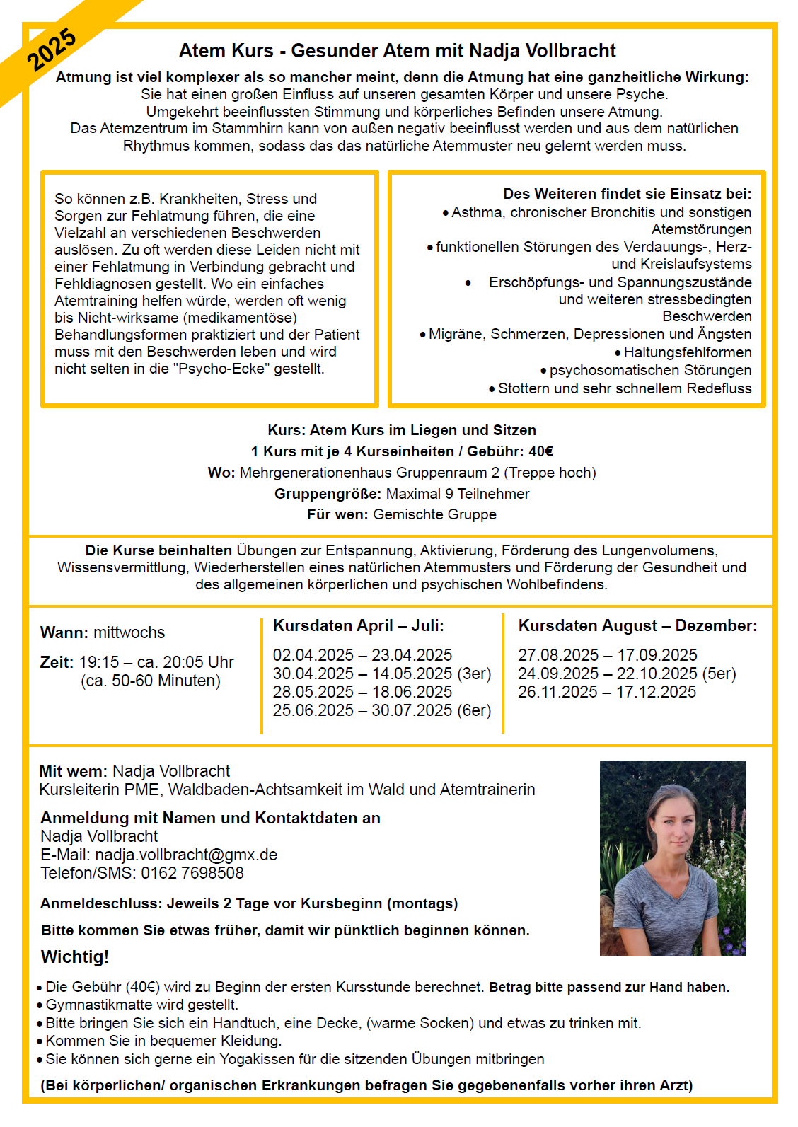 Atem Kurs - Gesunder Atem mit Nadja Vollbracht